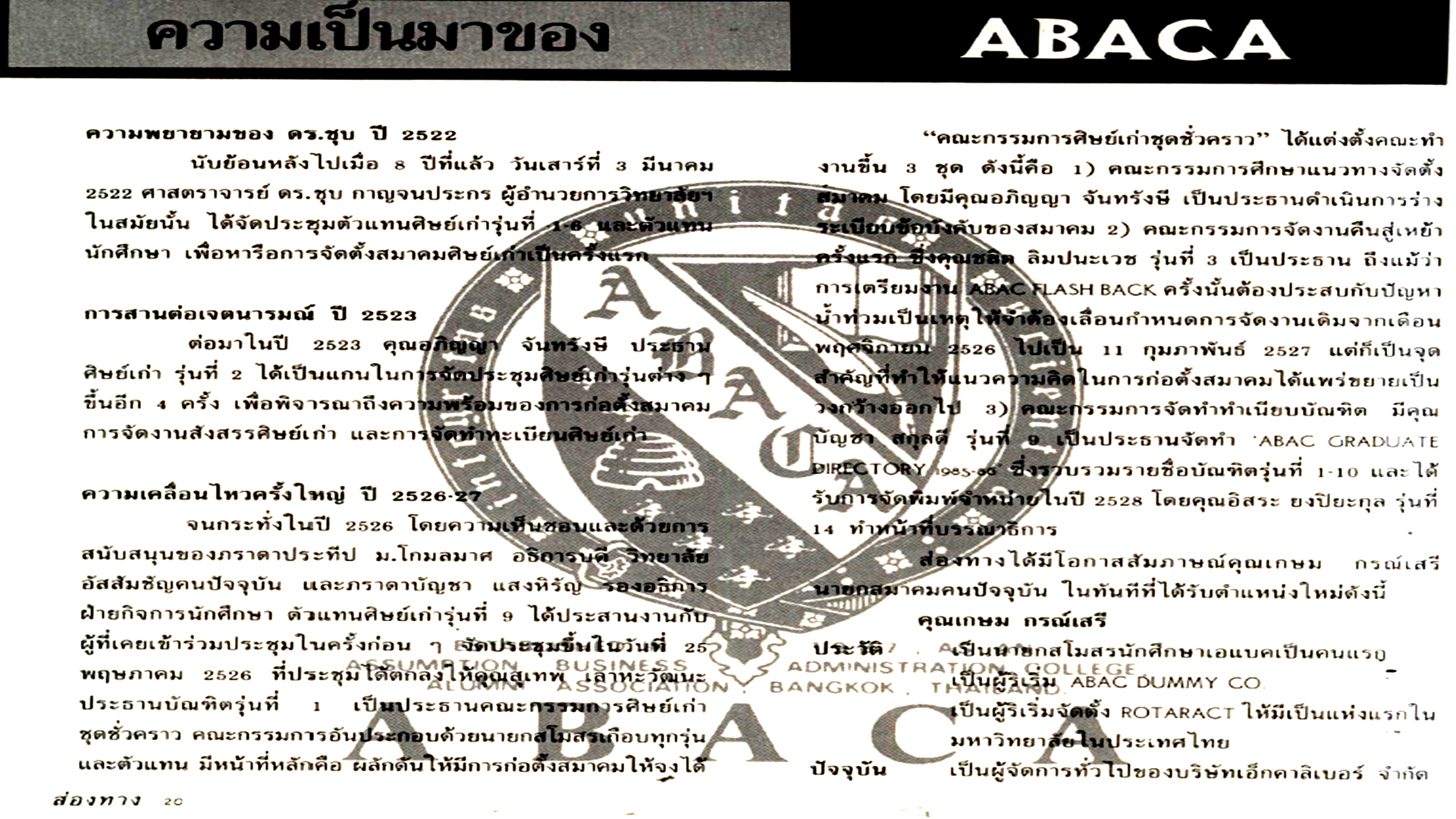 March 3, 1979, the first ABAC Alumni Association was established by Prof. Dr.  Choop Kanchanaprakorn, the College President.